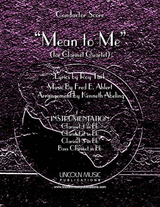 Mean to Me, Music by Fred E. Ahlert and Lyrics by Roy Turk arranged for Clarinet Quartet by Kenneth Abeling. This is a ballad arrangement of Ahlert and Turk’s popular song from 1929. The playing time is approximately 3:30. |