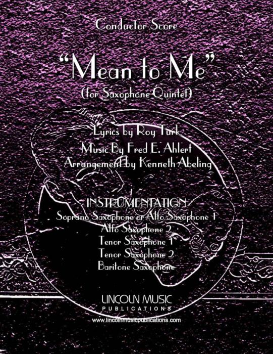 Mean to Me, Music by Fred E. Ahlert and Lyrics by Roy Turk arranged for Saxophone Quintet by Kenneth Abeling. This is a ballad arrangement of Ahlert and Turk’s popular song from 1929. The playing time is approximately 3:30. |