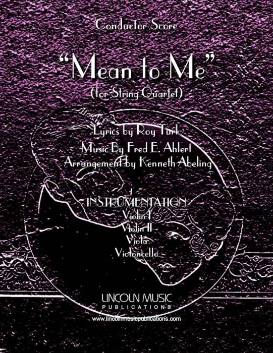 Mean to Me, Music by Fred E. Ahlert and Lyrics by Roy Turk arranged for String Quartet by Kenneth Abeling. This is a ballad arrangement of Ahlert and Turk’s popular song from 1929. The playing time is approximately 3:30. |