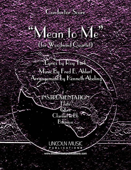 Mean to Me, Music by Fred E. Ahlert and Lyrics by Roy Turk arranged for Woodwind Quartet by Kenneth Abeling. This is a ballad arrangement of Ahlert and Turk’s popular song from 1929. The playing time is approximately 3:30. |