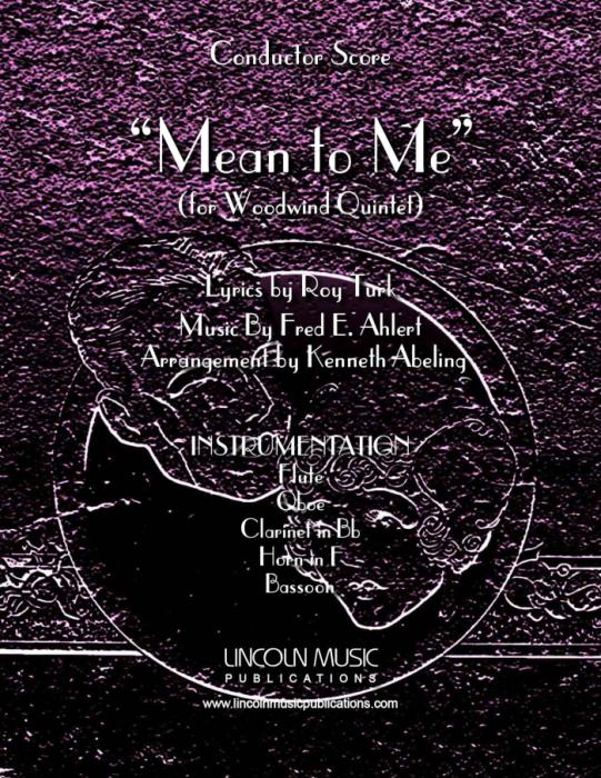 Mean to Me, Music by Fred E. Ahlert and Lyrics by Roy Turk arranged for Woodwind Quintet by Kenneth Abeling. This is a ballad arrangement of Ahlert and Turk’s popular song from 1929. The playing time is approximately 3:30. |